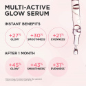 Et energiboost, som giver fornyet udstråling, glatter hudens tekstur og fugter huden - alt sammen i ét trin! Clarins Multi-Active Glow Serum er et tofaset serum som kombinerer stabiliseret C-vitamin for en mere klar og ensartet hudtone med glykolsyre (AHA) for at forfine hudens tekstur og øge dens udstråling. Økologisk ekstrakt af acerolafrø hjælper med at forstærke hudens naturlige glød over tid. Den sensoriske formel forvandles til lyserøde mikroperler ved påføring - en unik teksturoplevelse, der gør din hudplejerutine til den rene nydelse. Fugter huden i op til 24 timer*.