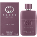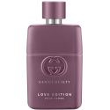 Gucci Guilty Love Edition Pour Homme & Pour Femme er to kraftfulde og passionerede dufte, skabt for at fejre kærligheden i alle dens former til Valentinsdag. Duoen udvisker grænserne mellem maskulint og feminint ved at have tilført dameduften en maskulin signaturnote og herreduften en feminin signaturnote. Gucci Guilty Love Edition Pour Femme åbner med sensuel, blomstrende friskhed af syren – en tydeligt grøn og frisk note med en elegant, honningfyldt sødme. Syrenakkordens tillokkende effekt får dig til længselsfuldt at ville have mere ved at lege med de kølige, jordbundne noter af patchouli i hjertet. Den træagtige og rige varme videreudvikler sig til en dyb og omfavnende base af musk og rav. Flakonen til hende er i en mat, lilla nuance, der repræsenterer den ene halvdel af kærlighedshistorien. Designet er prydet med husets klassiske GG-logo og en sølvbørstet duftprop.