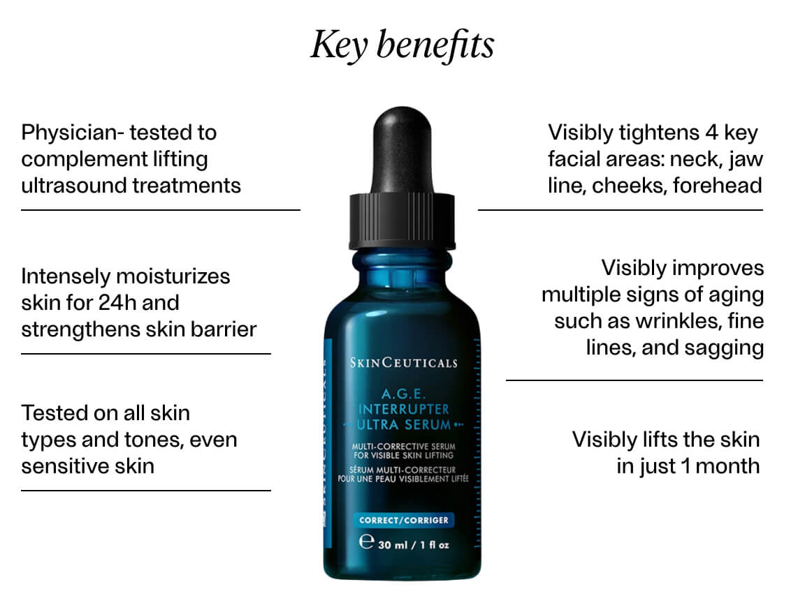 A.G.E. Interrupter Ultra Serum er serummet, der tager opstramning til næste niveau. Den dobbeltpatenterede formel med høj koncentration af Flavo-Proxylane arbejder sammen med Cassia alata og rhamnose for at styrke hudens struktur, bremse kollagennedbrydning og udjævne hudtonen. Hvis dine mål er tydeligere konturer, mere løft og en ungdommelig elasticitet, fortjener dette serum en naturlig plads i din rutine.
