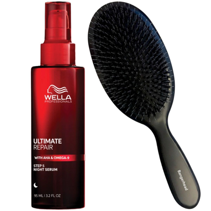 Wella Professionals Ultimate Repair Night Serum er et leave-in-serum til natten, som synligt korrigerer sløvhed, tørhed og brud. Leave-in-formlen indeholder omega-9 for intens hydrering og forsvarspolymerer, der hjælper med at beskytte håret mod stressfaktorer om natten ved at skabe et usynligt skjold. AHA i Ultimate Repair er almindeligt kendt fra hudpleje og bruges til at styrke, nære og forebygge brud i sundt og kemisk behandlet hår ved at genopbygge hydrogenbindinger og trænge dybt ind i hårfibrene. Alt dette er med til at reparere beskadiget hår natten over og give det næring i op til 8 timer.