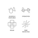- Intensiv maske, der plejer skadet hår og beskytter hårets fibre. Det aktive virkestofkompleks reducerer brud, styrker og reparerer håret efter en enkelt anvendelse. Det skadede hår bliver glat og let at frisere igennem, hvilket forhindrer yderligere mekanisk skade.